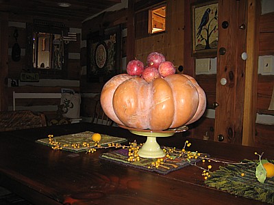 Fall table decoration at Ruckman Mill Farm Next → Fall decoration at Ruckman Mill Farm 10 pound pumpkin bought in Hampshire County and fiber mats decorate the table during MSFA meeting