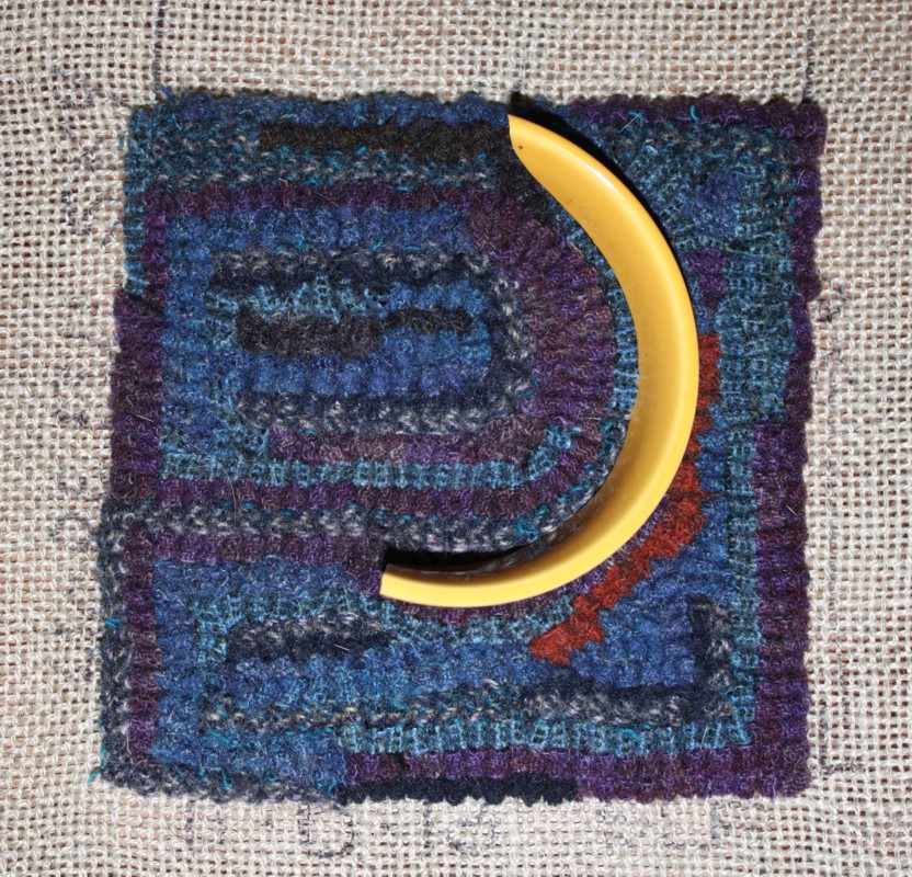 11-6-13 New Moon, Susan L Feller ← Previous Next → 11-6 New Moon, hooked, ceramic, metal Susan L Feller ceramic mug piece, hooked