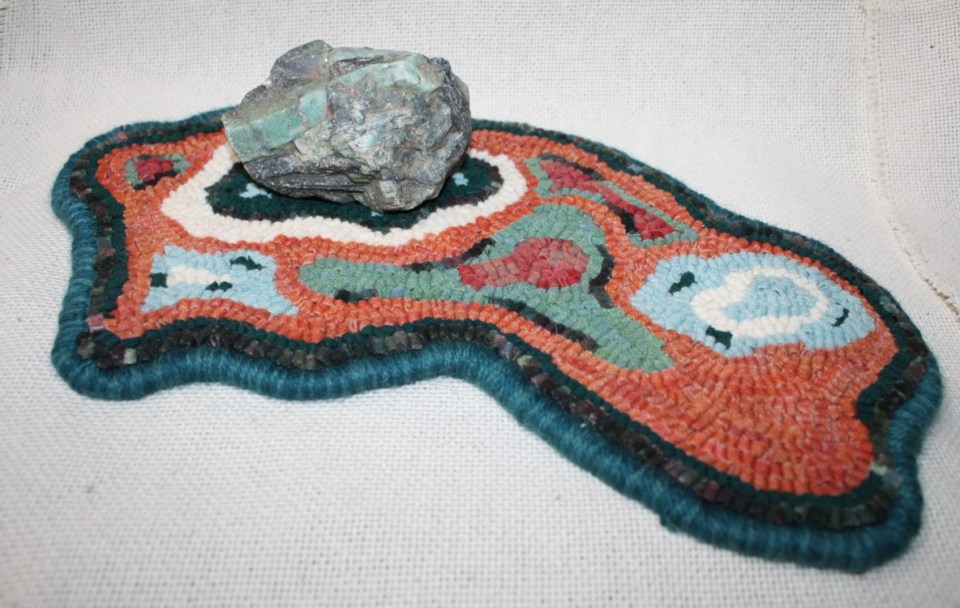 Original art Emerald Rock Rug, Lori LaBerge Next → Emerald Rock Rug, Lori LaBerge hooked mat and emerald rock