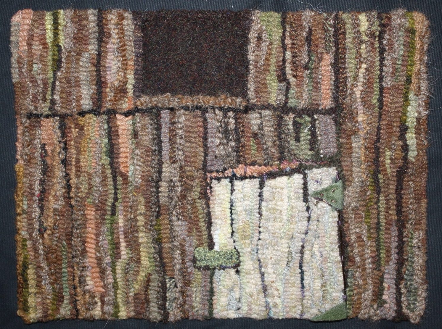 Neighbor’s Barn, Susan L. Feller ← Previous Next → Neighbor’s Barn alpaca yarn, wool hand dyed, pulled loops, wire