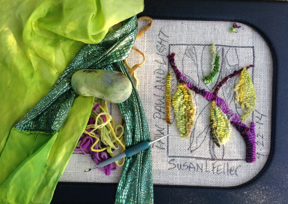 one hour into project Susan L. Feller ← Previous Next → An hour into work hooking outdoors, Susan L. Feller