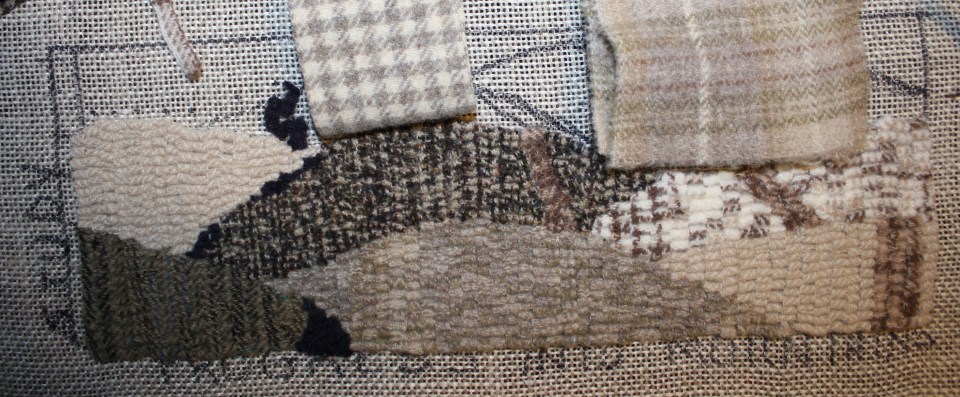 12 2013 Study Progress into Mountains 1 ← Previous Next → Study for Progress in the Mountains hand hooked neutral textures and solid wool fabrics