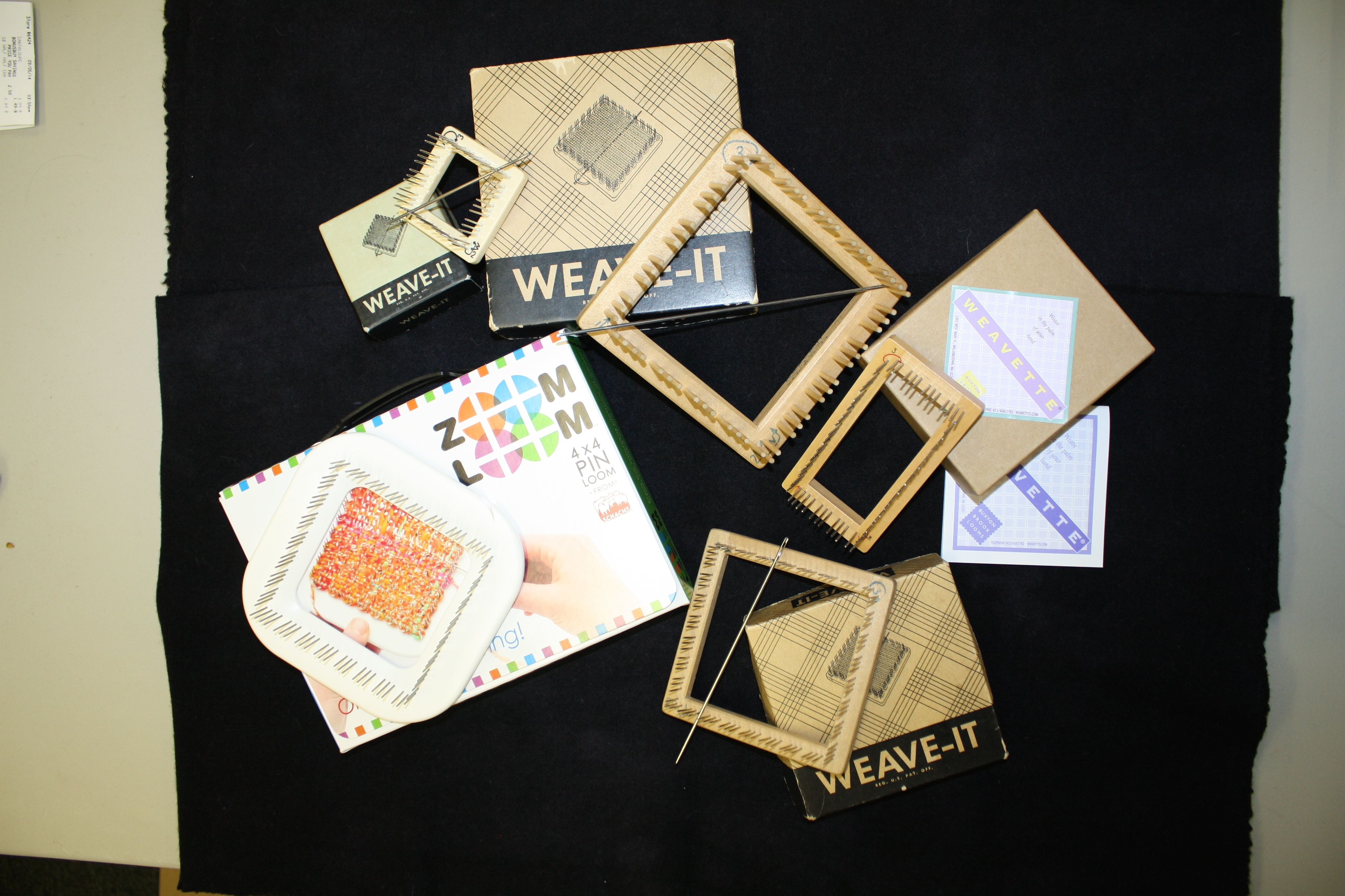 We played with pin looms ranging in sizes from 2 inch square to 4″ x 6″ and using a variety of yarns and ribbons. The March/April/May 2015 issue of Rug Hooking Magazine includes an article about continuous weaving incorporating pieces into hooked art. The annual hike to the glen with waterfall and hemlock grove introduced the property at Peterkin to the new attendees on Saturday afternoon.