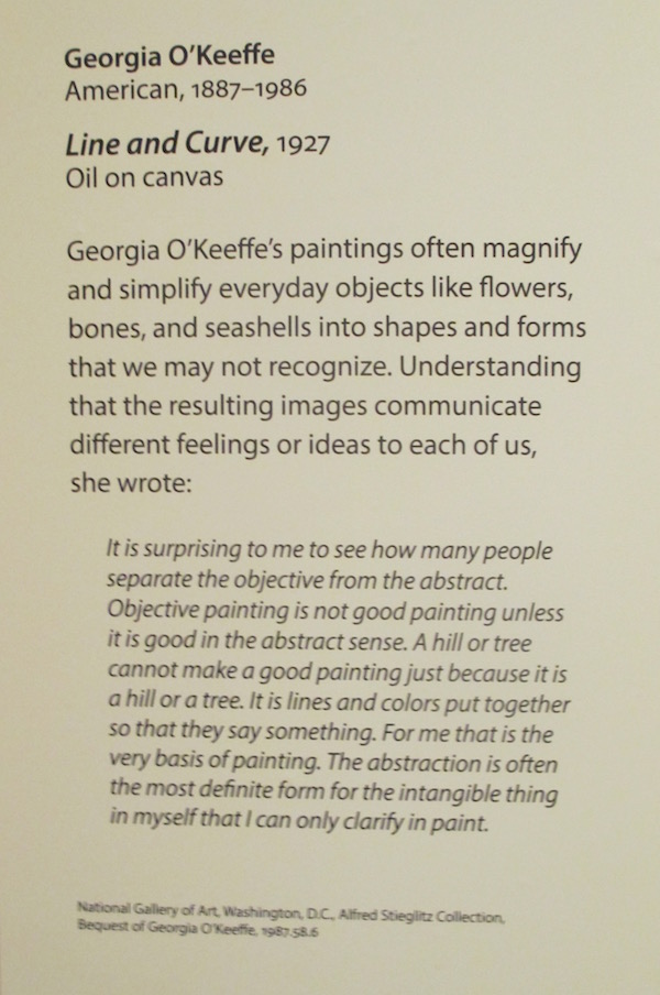 Line and Curve 1927 Georgia O’Keefe, National Gallery of Art, Wash DC ← Previous Next → label in exhibit at Chrysler Museum of Art, Norfolk VA