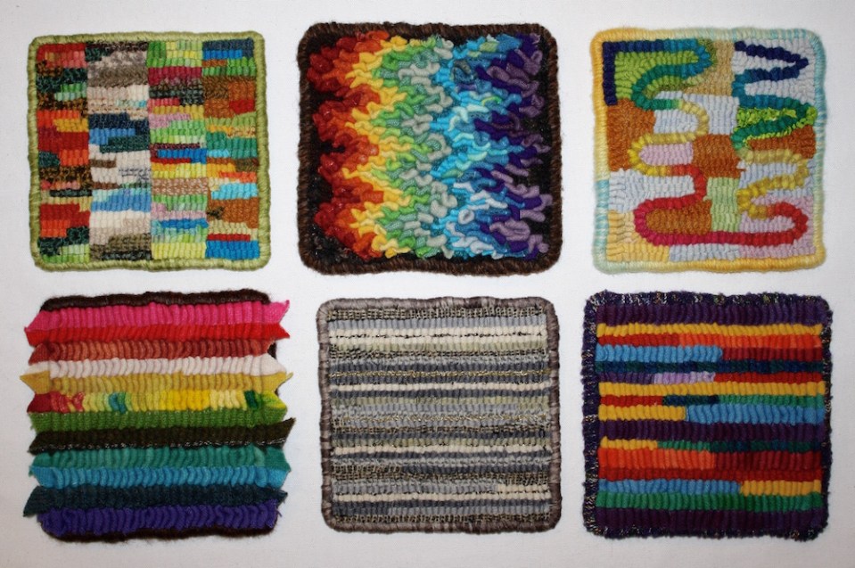 Color upper left clockwise: 12-26, 3-18-3-2, 7-30, 7-26, 8-10 ← Previous Next → Color five inch mats worked in wool by Susan L Feller