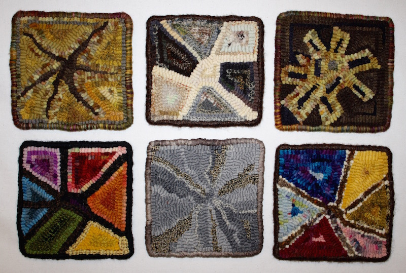 Radial Design (upper left clockwise) 1-5, extra, 1-4, 6-26, 7-31, 6-4 ← Previous Next → Radial design five inch mats hooked by Susan L Feller