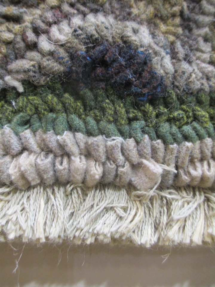 Finishes Sandra Hall, pattern by the Sampling (the dove) ← Previous Next → Sandra Hall applied “double linen” thick fringe wide cuts, high loops, very thick “double linen” applied fringe