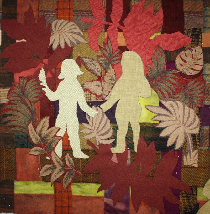 Into the Garden layout decisions 1 ← Previous Next → Into the Garden, layout without blue motifs applique with discontinued upholstery samples and woven wool fabric