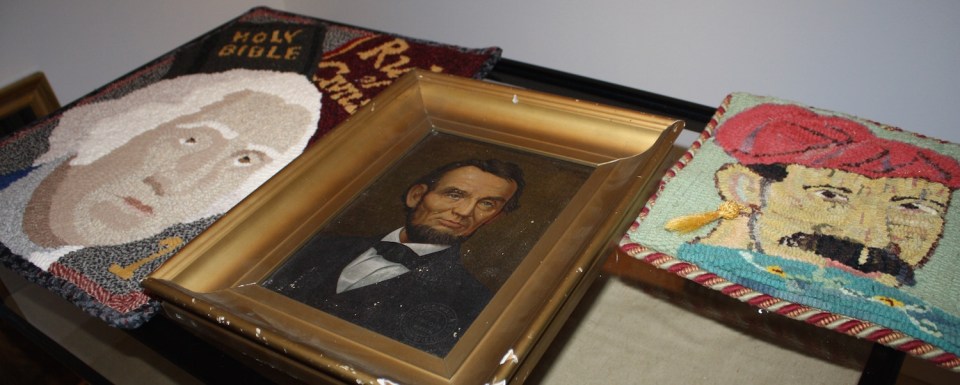 Face Time Nola Heidbreder, Lincoln Watch, June Myles ← Previous hooked mat, advert, hooked mat hooked mats Nola Heidbreder, and June Myles and painting for exhibit