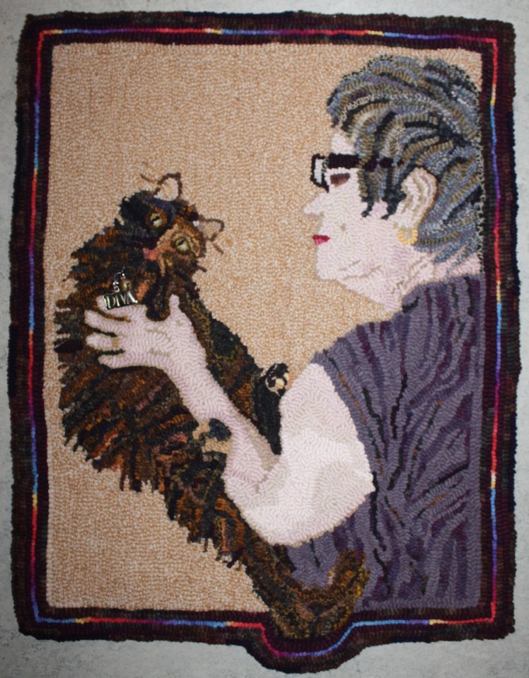 Portrait Rugs Rita Hammock Mona and Me ← Previous Next → “Mona and Me”, Rita Hammock, design Laura Pierce/photo Darryl Hammock, Brighton, MI hand hooked wool with embellishment