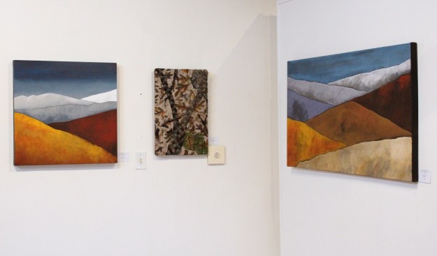 Abbie Chessler and Susan Feller’s work in this exhibit is a bringing together of expressions of far mountain vistas and the intimacy of the forest when it surrounds you. Susan and Abbie look to the natural world around them for inspiration. This emotional connection to the forest and mountains is reflected in their use of color and form. It is the thread that makes their work seem as if it belongs together.