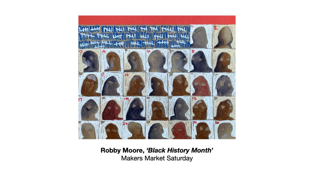 Robby Moore lives in Beckley, WV and is “inspired by the abstraction of shape, ephemera, tradition and mores; especially those steeped in Appalachia. He tries to express, through his figures, the sadness and confidence that comes from deep thoughtfulness.”