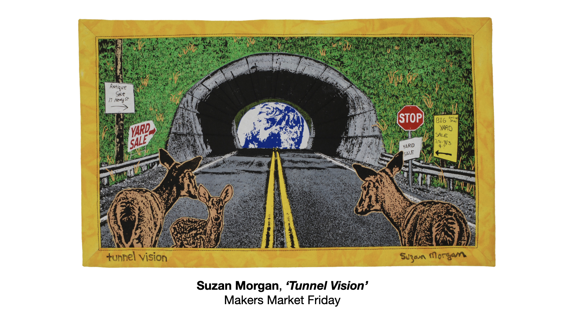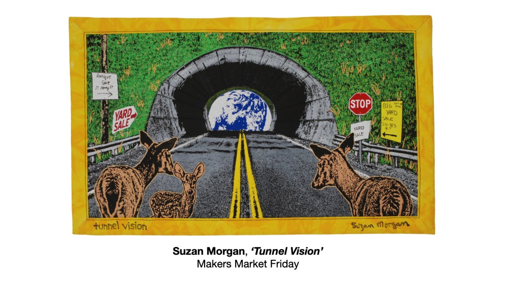 Susan states “The message in all my work is to consider human impact on nature. Are the trees, coal and even hay, resources for us to exhaust or materials to carefully harvest? Makers for generations used traditional hand work skills (embroidery, applique’ and rug hooking) to create utilitarian objects. They left their unique voice in the designs and often spoke of their social environment. I am carrying on that legacy, hoping others will join me on this journey”. Visit ArtWools.com to explore, react and connect