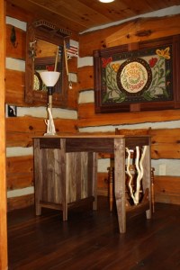 Seeing the long, green, 36″ round gasline pipes stacked on trucks slowly climbing the mountains of our state on a daily basis has raised my tension level. When I feel unable to control or change an event or action I create. Slowly a design nudges my consciousness. The visual concept begins to evolve on paper. With a few adjustments the story I want to tell appears as a cartoon (line drawing). My energy changes from lethargic to accelerated and materials are gathered, or made in the dye pots. Pulling loops and stitching with needle and thread, slowly I talk to myself. When finished I can talk to you.
