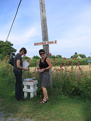 While in Belleville, the residents of the Dormitories (myself included) entertained ourselves with sidetrips. Pictured are Andrea and Peggy at the honor system seed box for wild hollyhocks. We travelled to the far eastern side of gorgeous, artistic Prince Edward County one evening in search of these flowers.