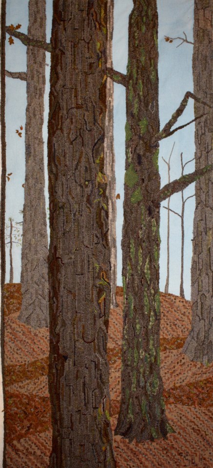 Trees in our Woods, Susan L Feller completed ← Previous Next → Trees in our Woods hooked, embroidery, applique’ on linen Like Loading...