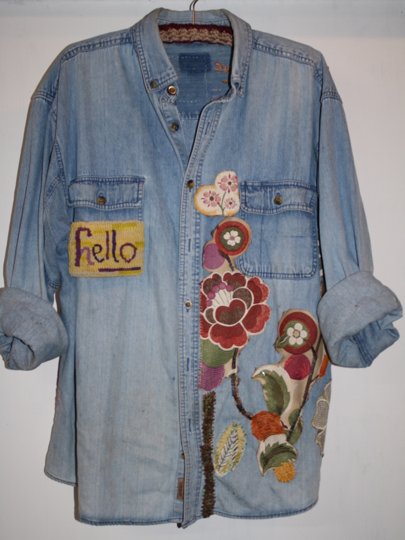 Shirt Women Speaking, Susan L Feller front ← Previous Next → Let Her Speak front jean shirt applique’ embroidery, hooked pin Susan L Feller Like Loading...