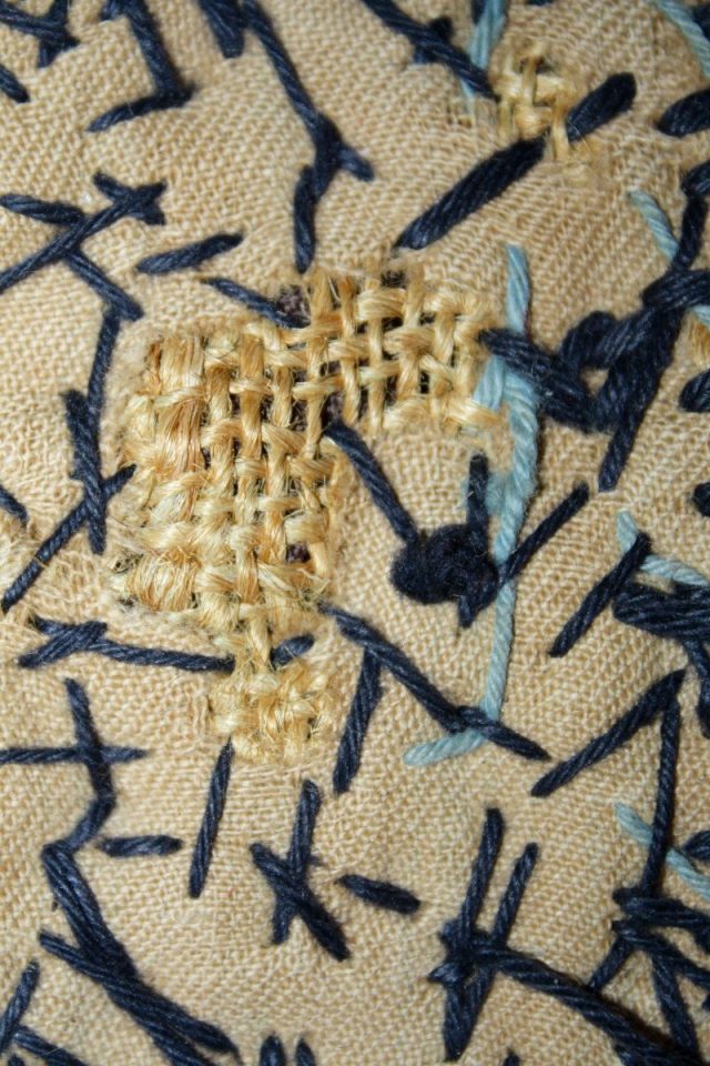 Collins rug #1 closeup back layer burlap, backing ← Previous Next → Back, inner layer burlap, stitching Like Loading...