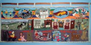 Traveling chronologically, Australia will bring in the day with end of year celebrations in New South Wales and Queensland, three time zones later in Western Australia. Follow these groups in 2020 by signing up on the Australian Rugmakers Guild’s blog. Then Japan and on to Abu Dhabi where Ti Seymour and the UAE Rugmakers are demonstrating punch and hooking at Costa Coffee Al Muneera Island. Håkon Grøn Hensvold, is in Skreia, Norway. His work is included in Rug Hooking Magazine and several books. The UK groups gather in London, the Yorkshires, Penzance and many villages in Great Britain, Scotland and Wales.
