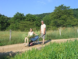 - pipe in dirt, logging, hay field