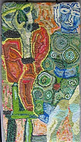 My intent in using traditional rug hooking as a medium is to honor the utilitarian purpose of past generations and present my work to a new audience when shown on the wall as visual art. The two pieces were designed as large floor rugs for these reasons and because big gets attention.
