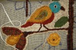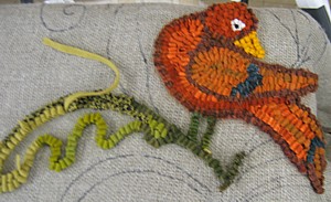This great bird detail is from Susan Latham’s rug, her third hooked project.