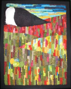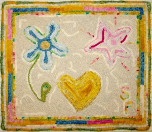 Mona was a good friend. Created to preserve our friendship, then she became ill. The rug was worked on during the months prior to her passing. Rug hooking is good therapy and creates memories.