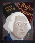 This portrait of George Washington is traditionally hooked with strips of wool fabric cut in 3/8” strips. He read his Bible for one hour twice a day. Book available with first 44 “Hooking the Presidents”. Visit NolaHooks.com