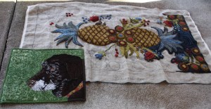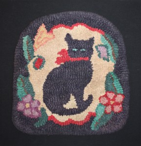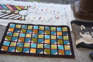 My responsibility as co-curator of the ‘Garden to Table’ exhibit at the Schwenkfelder Library and Heritage Center was to collect contemporary work incorporating rughooking. The pieces contributed by Carolyn Boutilier, Kris McDermet, Mary Jane Peabody and Darlene York Trout along with several of mine portray a variety of techniques within the traditional rughooking medium.