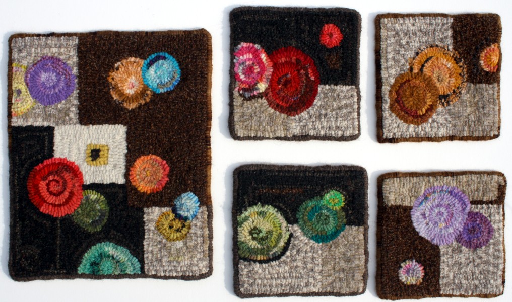 With students and friends while gathering for a few days of immersion in our mutual interests…fiber arts on the Puget Sound, retreating in Hampshire County WV and South Carolina, teaching in Maryland and Ohio at Sauder Village and lectures at Schwenkfelder Library, Pennsburg PA inspired me as much as my encouraging their design skills. Working with Alissa Novoselick and Emma Pepper developing an arts conference in WV; participating in an exhibit curated by Roslyn Logsdon in Maryland; promoting the McDonald Sisters of Gilmer County to thousands; and handing off a legacy to Green Mountain Hooked Rugs exposed me to new skills and supportive people.