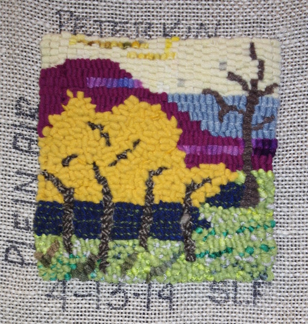 4-13-14 Plein Air Susan L Feller hooked wool fabric and cotton yarn ← Previous Next → 4-13-14 Plein Air, hooked Susan L Feller wool fabric Like Loading...