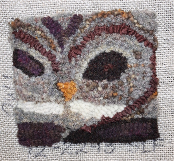 12-22-13 Owl Susan L Feller hooked wool fabric, yarn, sari silk ribbon ← Previous Next → 12-22-13 Owl hooked Susan L Feller, hooked with yarn and fabric Like Loading...