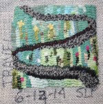 - 6-28-14 Progress in the Mountains, appliqué, hooked