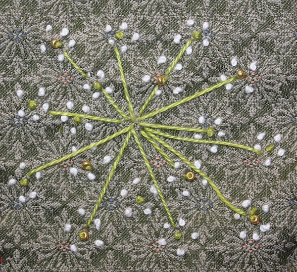 6-23-14 Dill Flower Susan L Feller journal cover embroidery, bead on upholstery fabric ← Previous Next → 6-23-14 Dill Flower, embroidery Susan L Feller cotton threads, beads, upholstery fabric Like Loading...